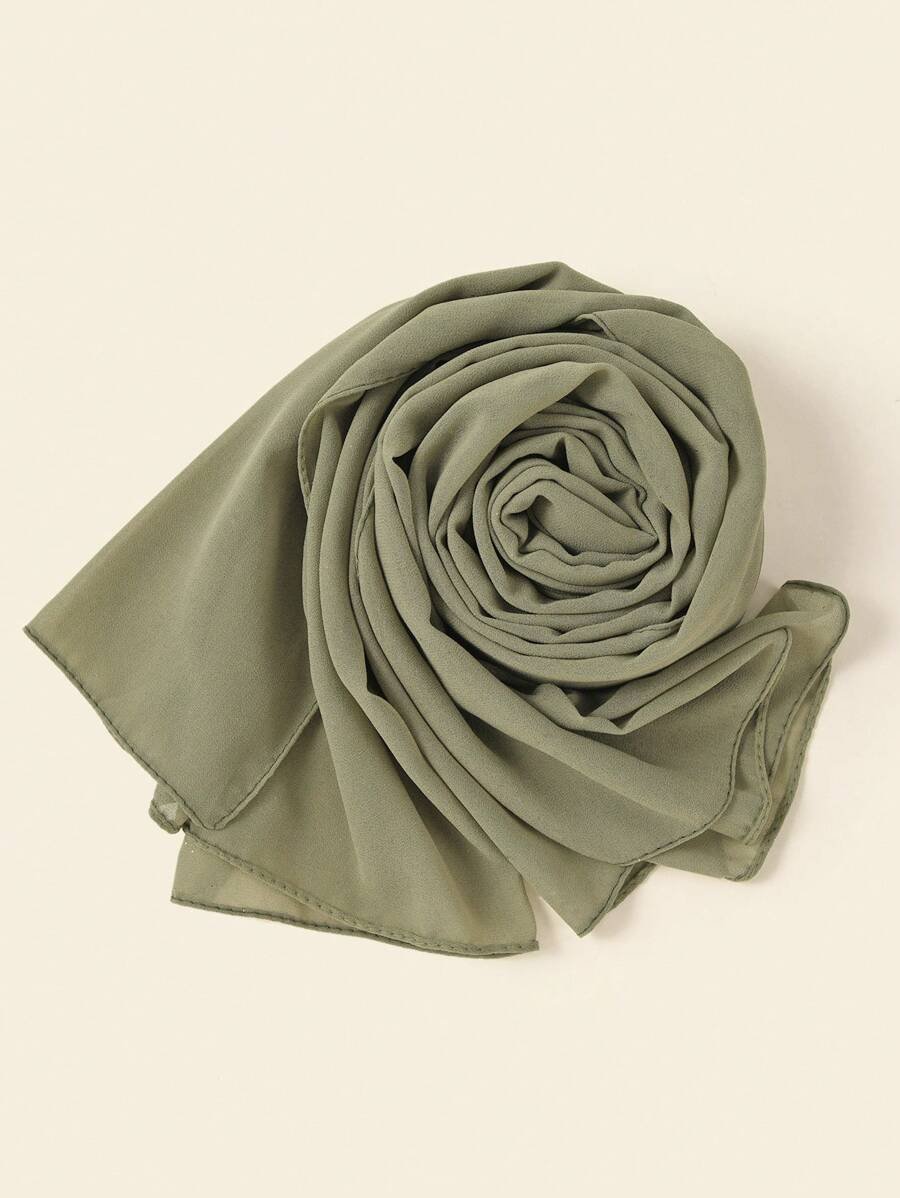 olive green chiffon georgette hijab with fade-resistant colors. Ultra-soft, lightweight fabric perfect for office wear and daily use. Durable quality that maintains softness after washing. Ideal for professional and casual styling.